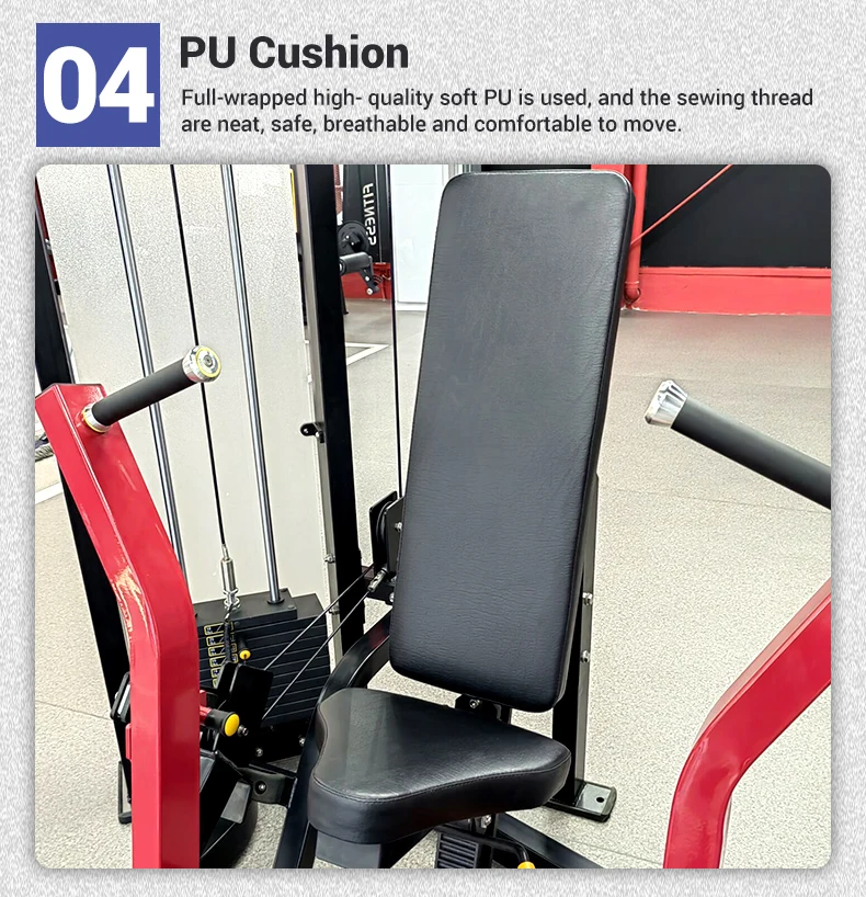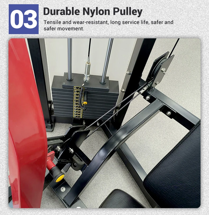 3.本機採用兩種高度配重箱,符合人體工學設計 4.護板:前護板採用亞克力塑料,後護板採用Q235彩鋼板 5.手柄材質:PP軟膠材質,握感更舒適 6.鋼絲繩:採用優質鋼絲繩,直徑6mm,718芯組成 7.坐墊:3D3D,直徑6mm,718芯組成。 8.塗層:汽車級烤漆工藝,色澤鮮豔,長久防鏽 9.滑輪:優質PA一次性注塑成型,內置優質軸承